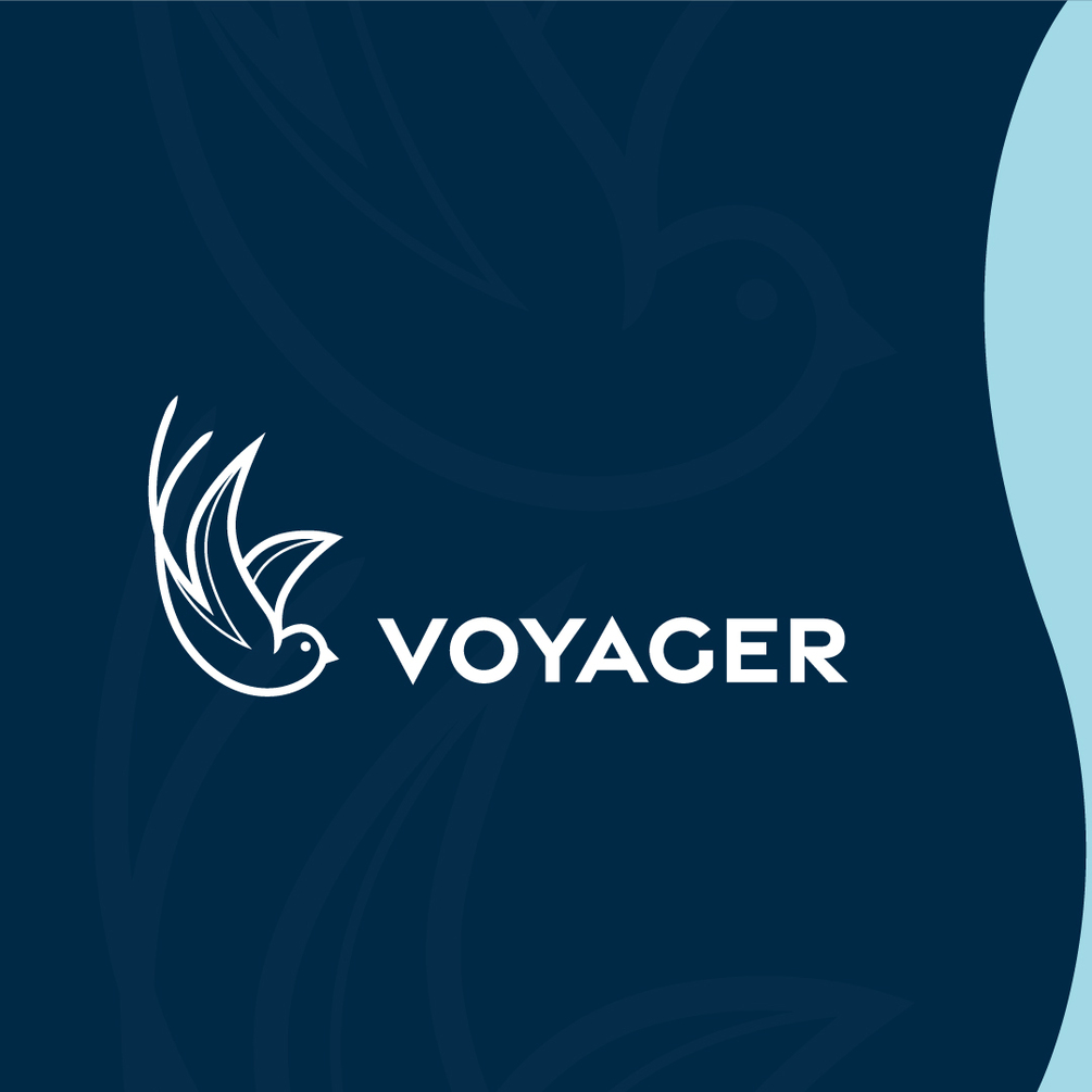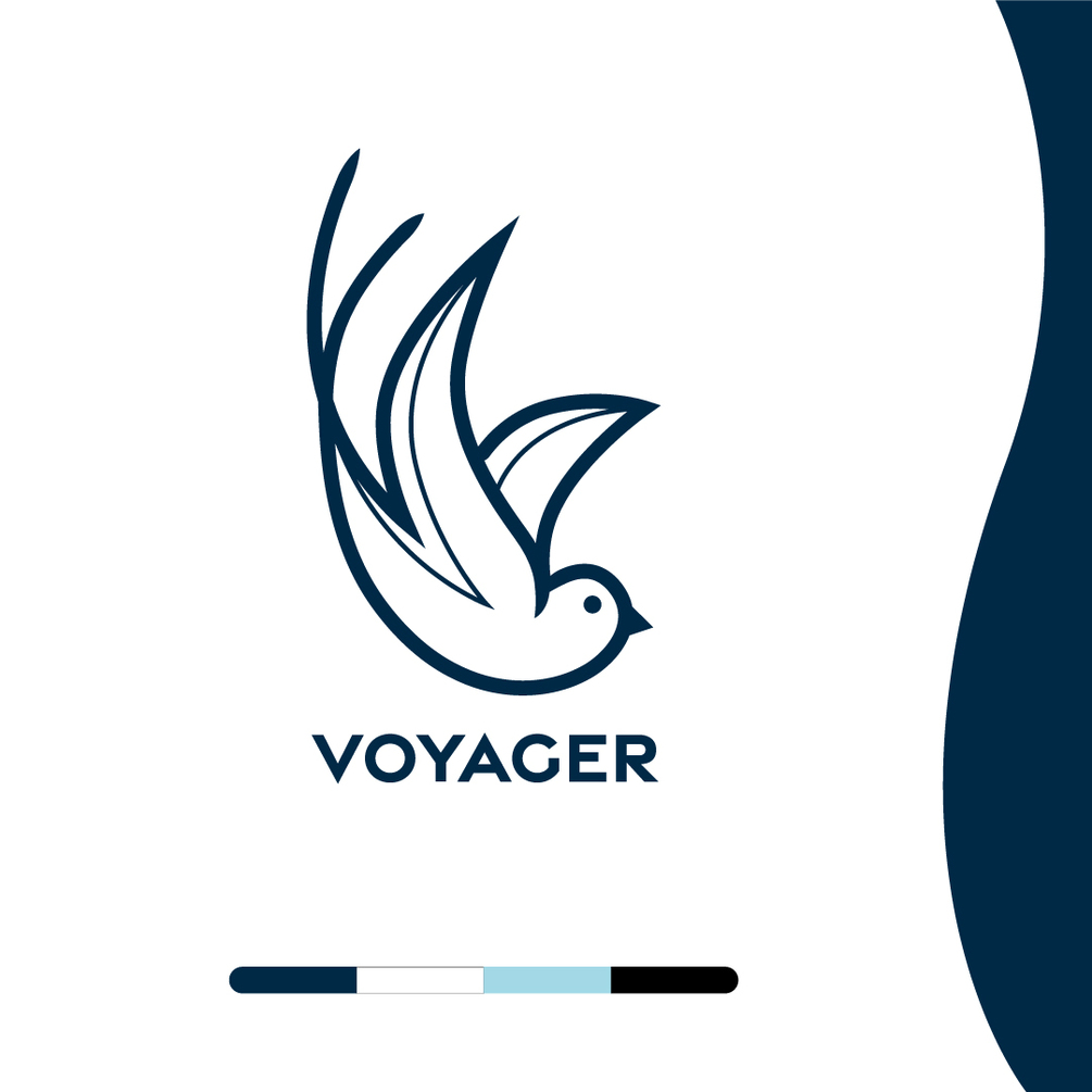 The 'Voyager' logo was created with clean minimalism at its core, using the motif to symbolise spreading wings and flying to freedom.